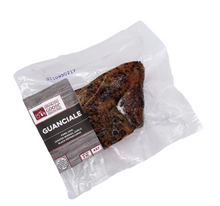 Ingredients: pork jowls, sea salt, brown sugar, spices (garlic, juniper berries, black pepper, bay leaves, nutmeg), red wine, vegetable powder (celery juice, sea salt)